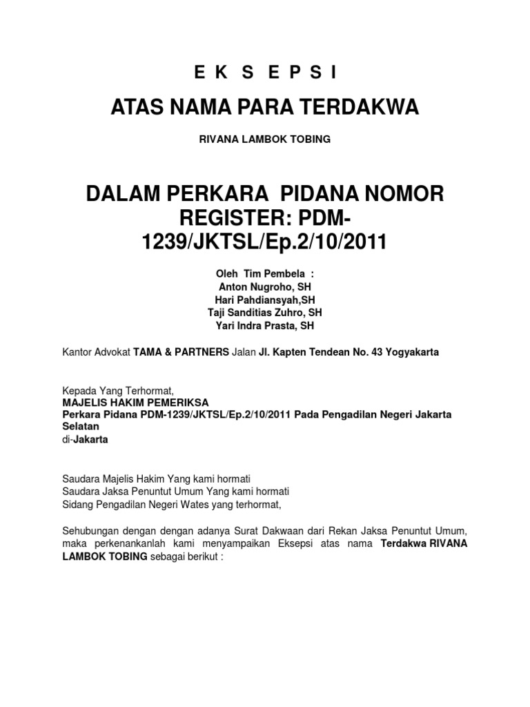| Lihat Pdf Contoh Eksepsi Riko Syahrudin Academia Edu |